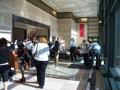 The next morning there were tree limbs sprinkled around near where we were. But the drama wasn’t over. Wednesday morning (after I’d had dinner with a Jewish representative and three B’ahai reps) one of the other meeting people and I walked with our brief cases and luggage from the hotel to the Lutheran Center. When we got to the Lutheran Center ground floor/lobby, there was a mass of people in the lobby. Apparently the power had been off for a while (it had gotten kind of warm in there). Dan, a research staff person who helps arrange things while we’re there, showed up in a few minutes. He had arrived at the Center and had taken the elevator up to work on the 9th floor (we were meeting on the 11th floor. A while after the power went off, he walked down eight flights of stairs to join us.) We huddled in the chapel until eventually the Lutherans and the Christian Reformed minister who serves as CCSP secretary arranged a meeting room for us in the adjoining Marriott (where we had stayed until two years ago). They even let us have our catered lunch delivered there. (They don’t usually allow outside food.) There was no Wi Fi there, and so – unlike in the Lutheran Center top floor – we probably all listened and participated more intently since – except for a few people with Wireless cards (Friday I called to find out about these: $40 for a router for wireless in the house; $60 a month –basically like an extra cell phone – for wireless card service – if you sign up for a two-year contract, the card itself is free) – we couldn’t check our e-mail or surf the Internet. Although we wasted some time, the whole experience helped us bond and woke us up a little bit – and got me marginally closer to the “L” station, which turned out to be critical.